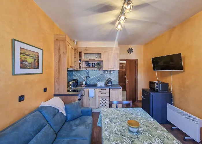 تشتمل الشقة على المطبخ الصغير كجزء من وسائل الراحة ذاتية الخدمة، وتوفّر للضيوف منطقة لتناول الطعام في الهواء الطلق ومنطقة تناول الطعام للاستمتاع بوجبات الطعام. ويمكن للمسافرين أيضًا الاستمتاع بوجبات الطعام في مشويات Mehana Bulgaria الذي يقع على مسافة 50 متر فقط. وتقع محطة تلفريك Gondola Ski Lift على مسافة 400 متر تقريبًا. يتمّ توفير فصول اللياقة البدنية لمحبي اللياقة البدنية.
